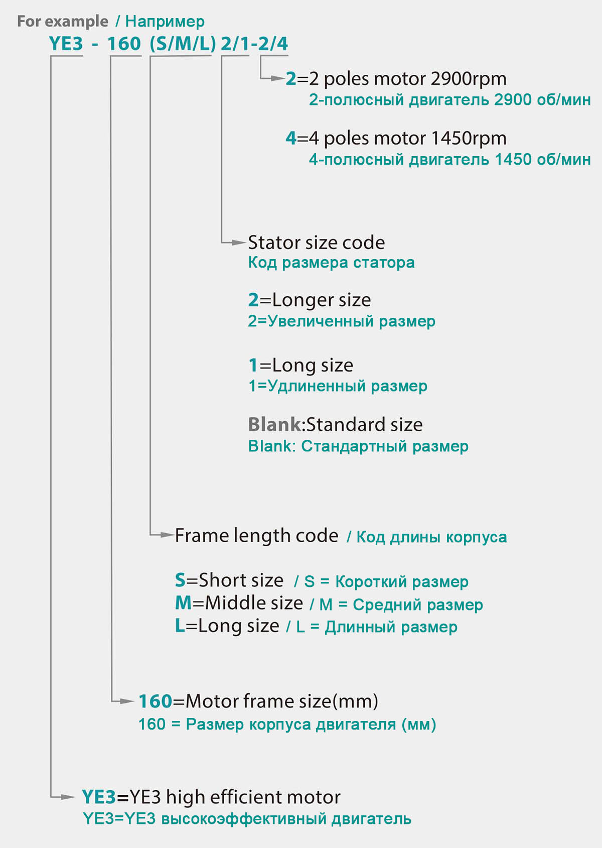 | YE3-315L1-4 | 160 | 220 | 1488 | 95.8 | 95.8 | 93.9 | 0.89 | 285 | 271 | 261 | 1027 | 2 | 2.2 | 7.1 | 92 | 1126 |