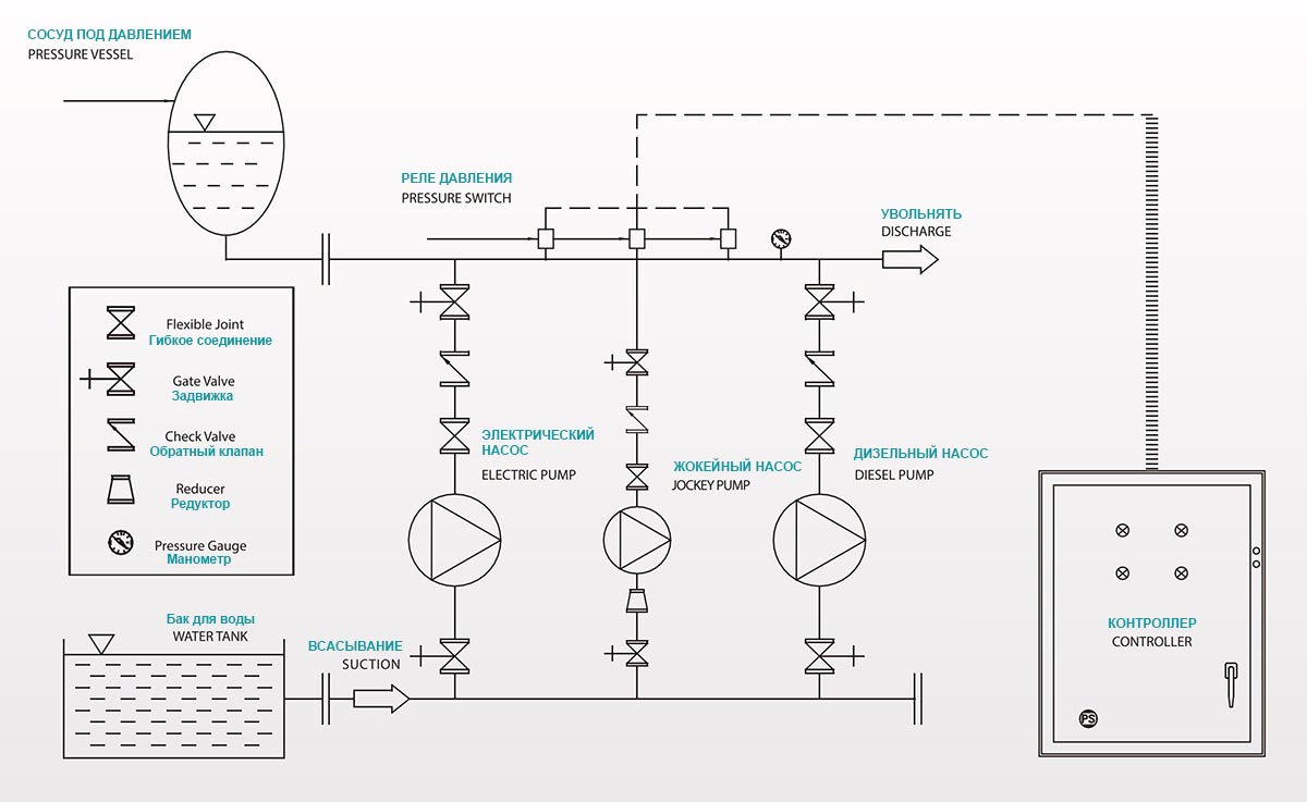 5. Сертификация NFPA 20 не допускает всасывания с отрицательного уровня для насосов с торцевым всасыванием и насосов с раздельным корпусом.